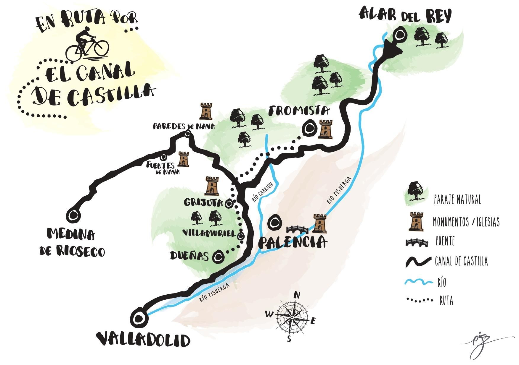 - Elementos destacados a lo largo de la Ruta del Canal de Castilla.